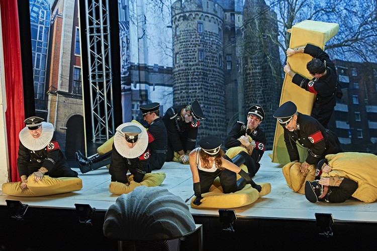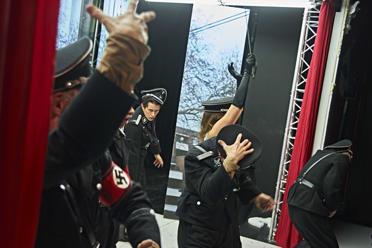 Herr Dobosch? Wir kämpfen hier gegen die braunen Horden. Natürlich mit den Mitteln des Theaters. Und die Polizei unterstellt uns Werbung für die Nazis. |